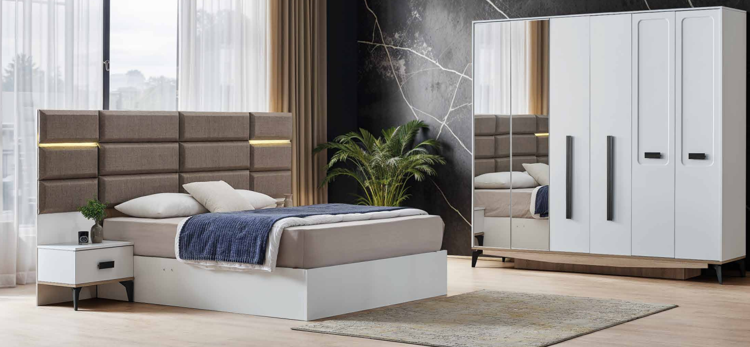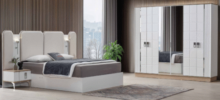 Minimalist design meets functionality in this elegant bedroom set.