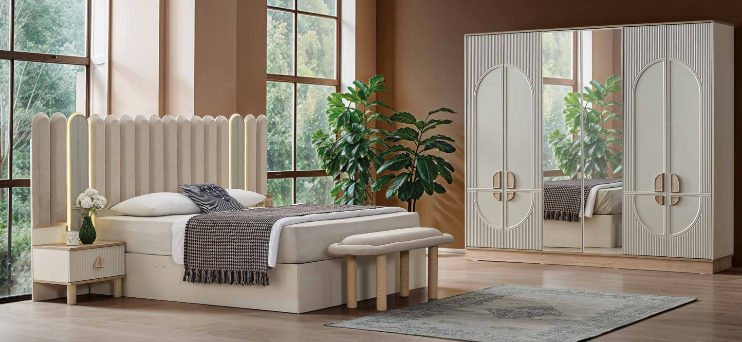 This contemporary bedroom set features clean lines, premium finishes, and a design that creates a calm and stylish atmosphere.